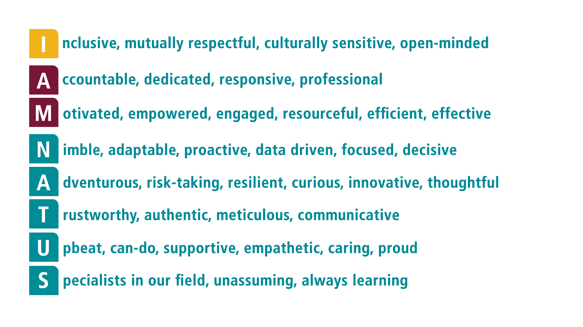 • Teammates and our collaborative, enjoyable workplace where all feel we belong, communicate and can grow as professionals