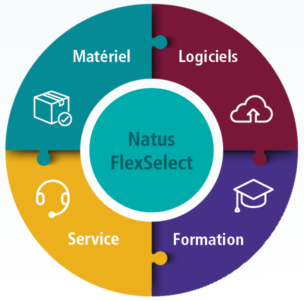 Natus vous propose une nouvelle méthode de travail pour vos cabinets médicaux et services permettant d’améliorer les soins aux patients sans se soucier du budget. FlexSelect est notre nouvelle offre de location financière qui vous donne accès aux équipements et aux solutions de pointe en audiologie pour vous aider à développer votre chiffre d’affaires. Le programme FlexSelect rassemble la fleur du matériel, des logiciels, du service et de la formation en un abonnement unique réglable par trimestre pour vous permettre d’apporter un soutien optimal à vos clients.