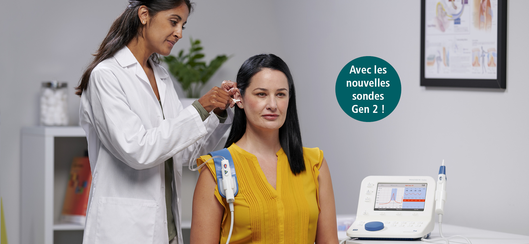 Les sondes et les embouts Gen 2 sont confortables à tenir et faciles à placer dans l’oreille, de sorte que vous pouvez sentir l’étanchéité et commencer à tester immédiatement.